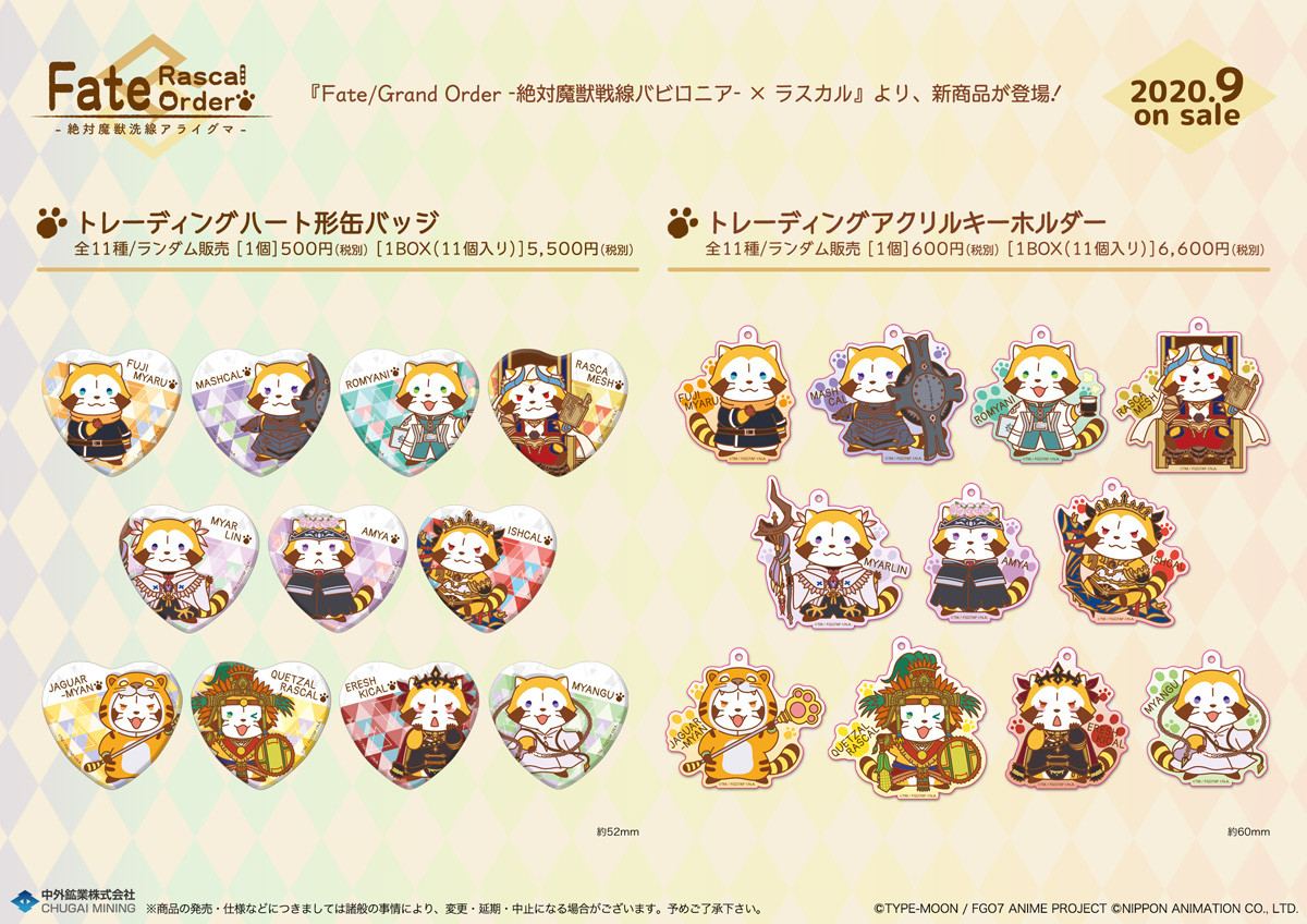 中外鉱業株式会社が運営するキャラクターグッズ通販サイト『Chugaionline』にて、「FGOバビロニア×ラスカル」コラボ新商品の予約を受け付けております。この機会に是非ご注文ください。
