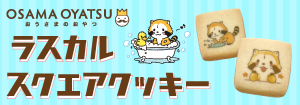 おうさまのおやつで大人気!かわいいラスカルのイラスト入りスクエアクッキー5粒入り。