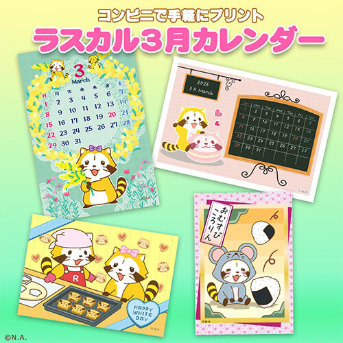 コンビニプリントで「ラスカルカレンダー 3月」販売開始!