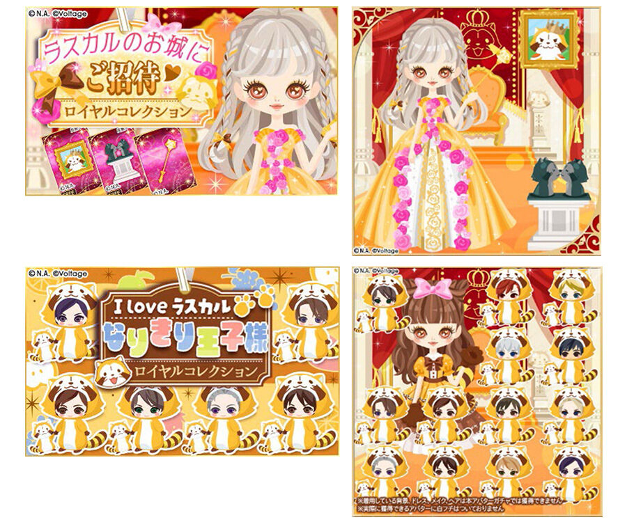 ラスカルのモチーフでいっぱいのコーディネートが楽しめる「ラスカルのお城にご招待♡ロイヤルコレクション」と、ラスカルになりきった王子たちと、ラスカルのちびアバターが手に入る「I LOVE ラスカルなりきり王子様ロイヤルコレクション」を配信いたします。