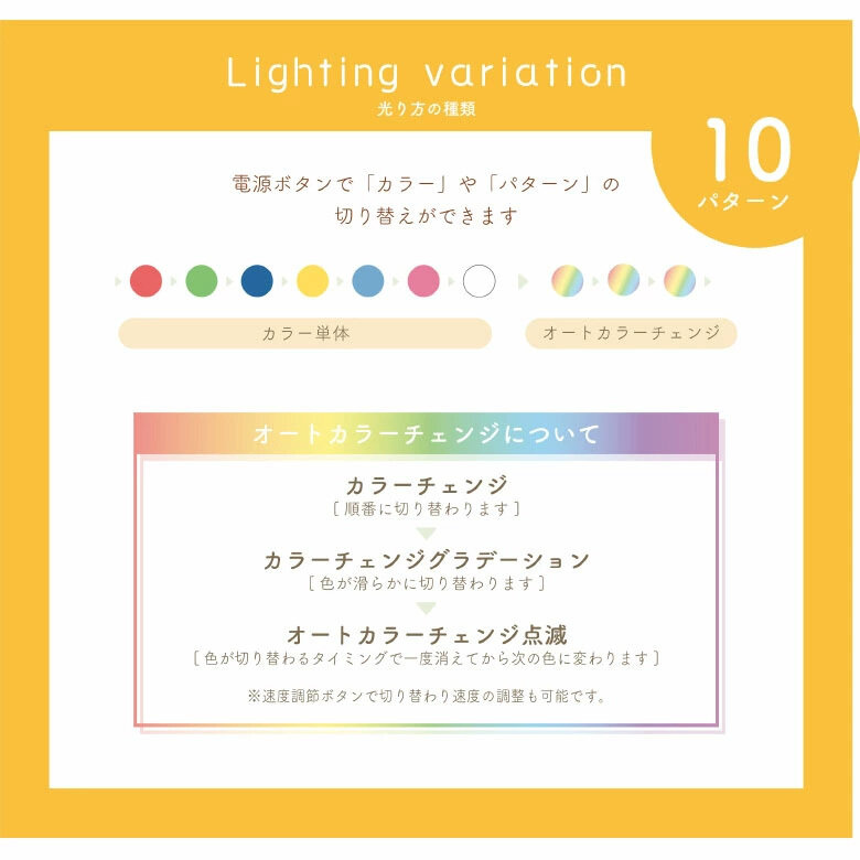 ・電源ボタンで「カラー」や「パターン」の切り替え可能