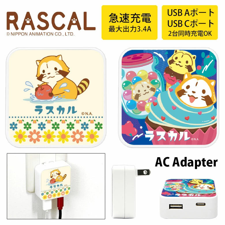 【ラスカル USB/USB Type-C AC アダプタ】