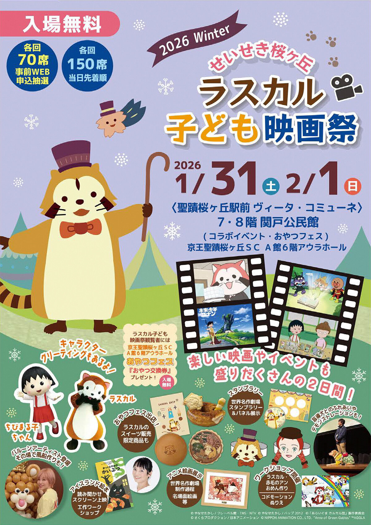 多摩市・聖蹟桜ヶ丘駅周辺にて1月31日(土)・2月1日(日)の2日間、子どものための映画祭「ラスカル子ども映画祭」が開催されます。